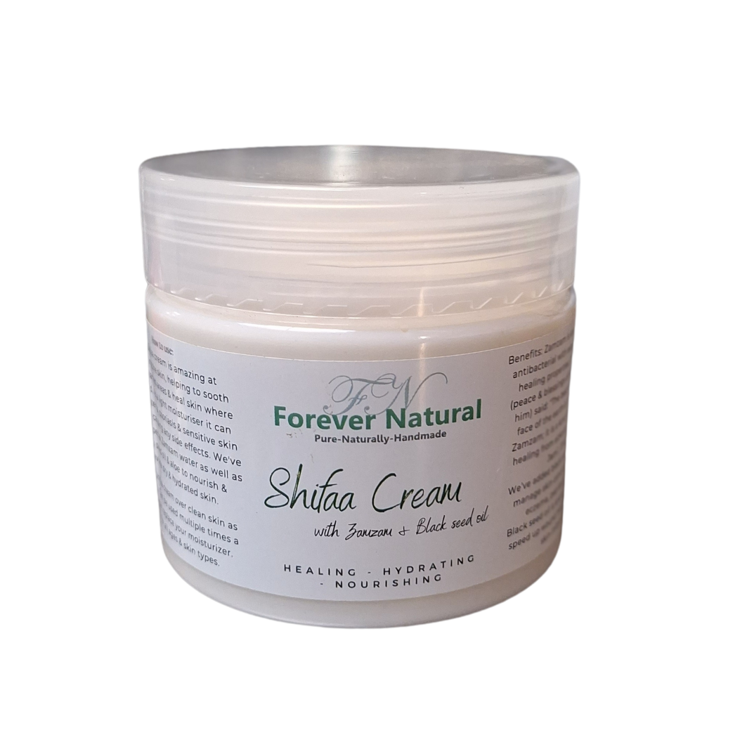 Our Shifaa cream contains zamzam and blackseed oil for its antibacterial and excellent wound healing properties and scented with beneficial pure essential oils.